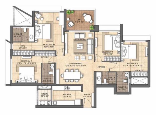 | 4 BHK | 1603 sqft | ₹ 9.36 Cr* Price Breakup |