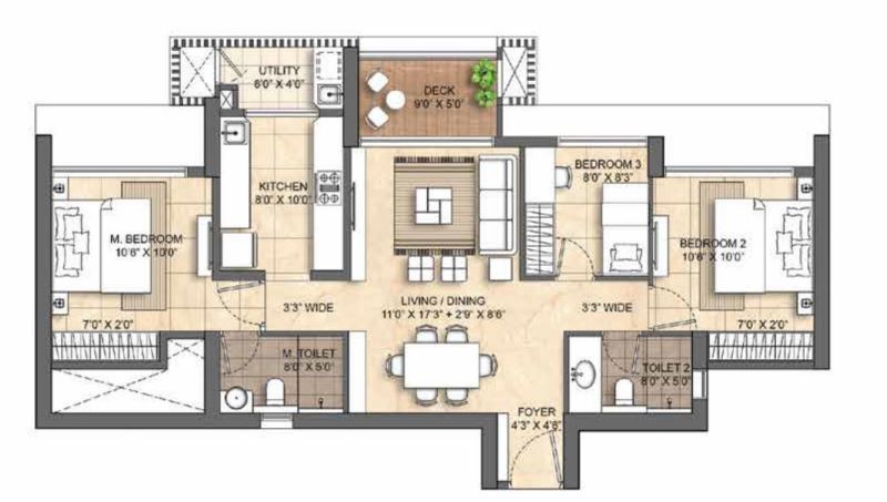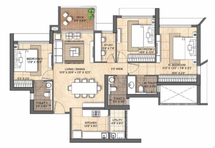 | 3 BHK with Study | 1206 sqft | ₹ 6.28 Cr* Price Breakup |